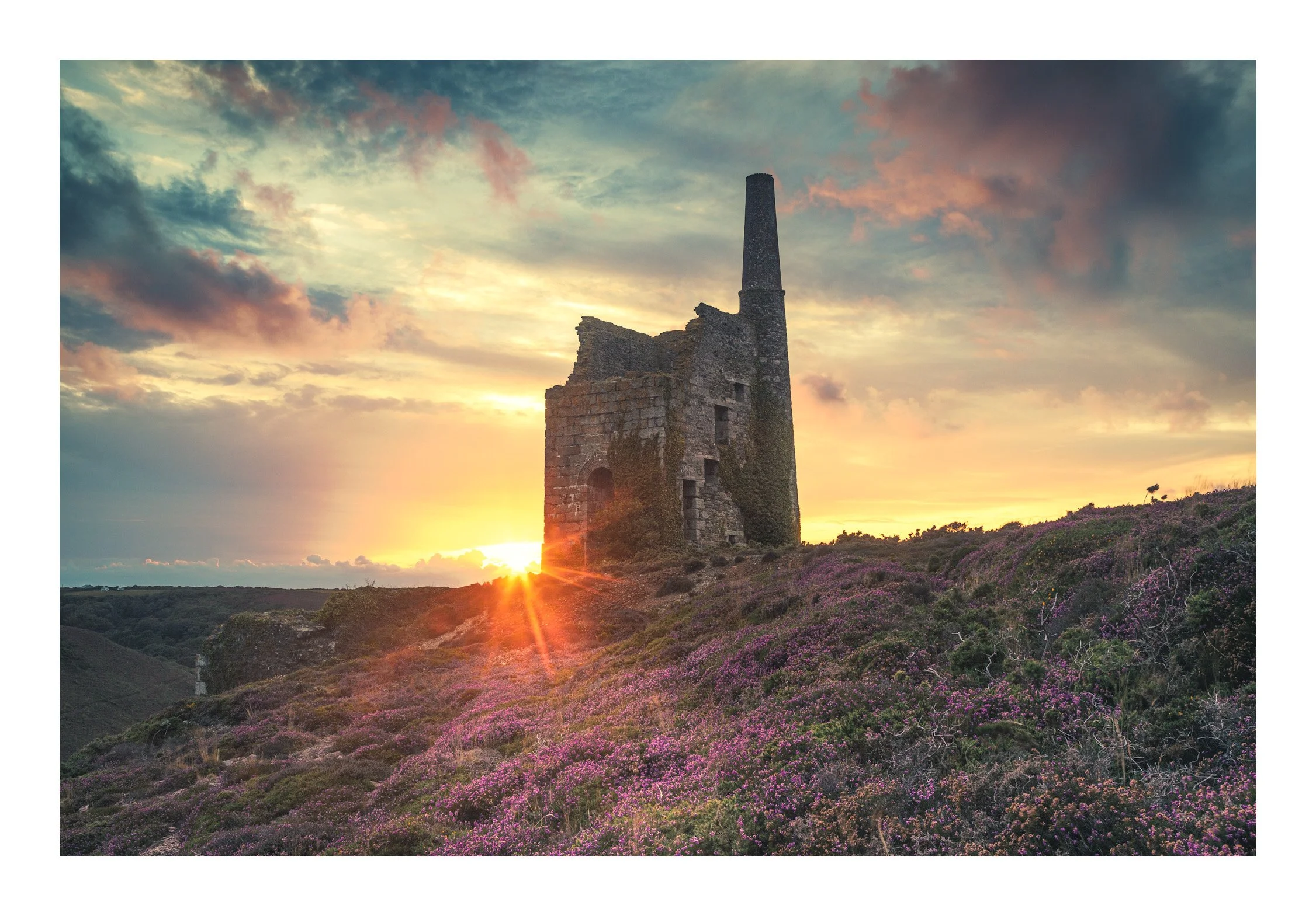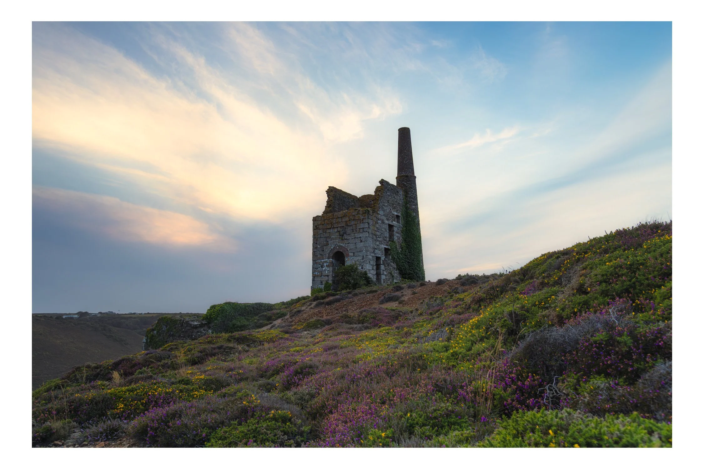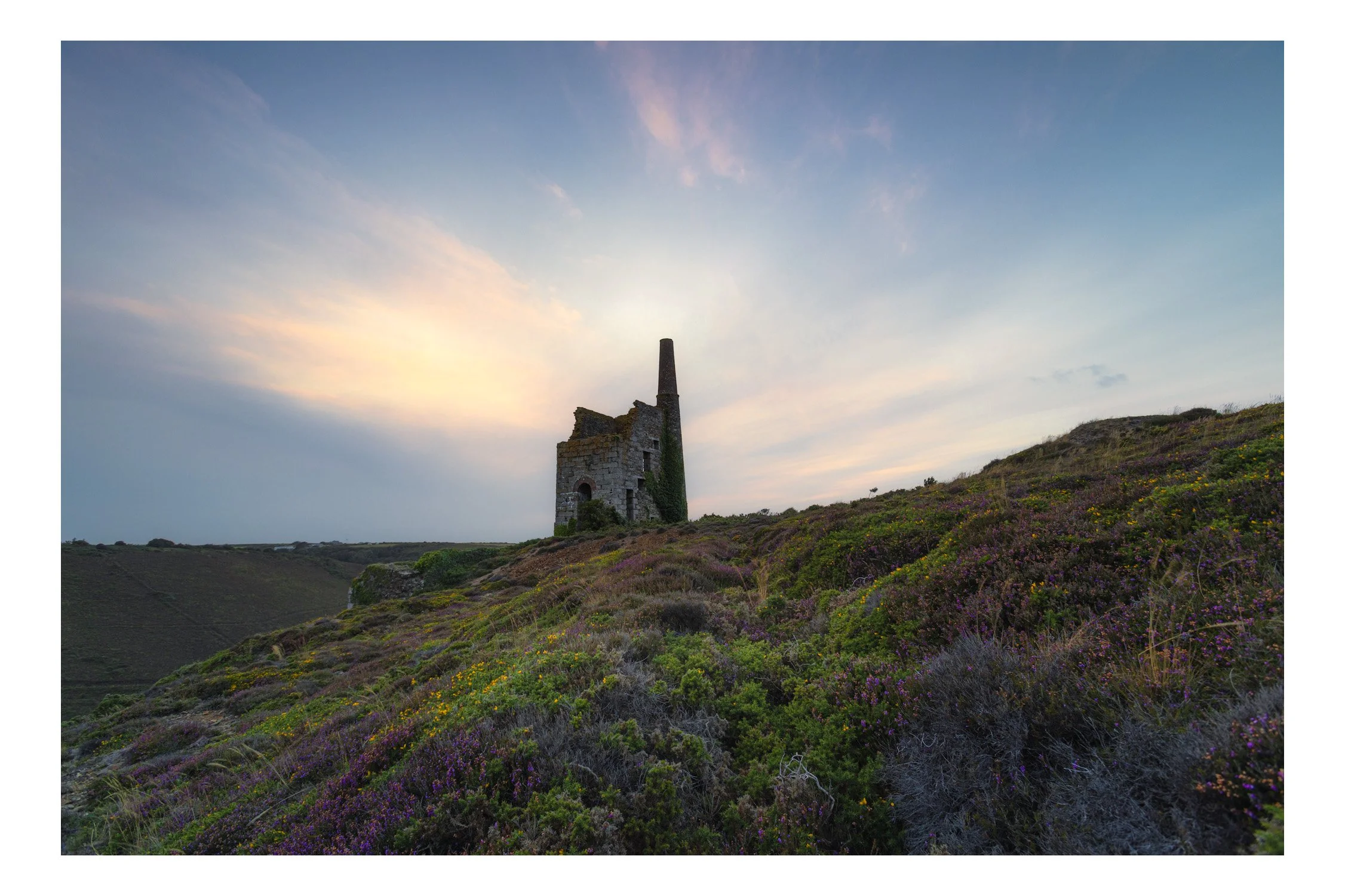 There’s a narrow sliver of time in the Cornish summer when the hills above Porthtowan erupt in purple — and if you’re lucky, the skies join in too. Recently I headed up to John’s Pumping Engine House, camera and drone in hand, chasing a sunset that was more maybe than definitely.